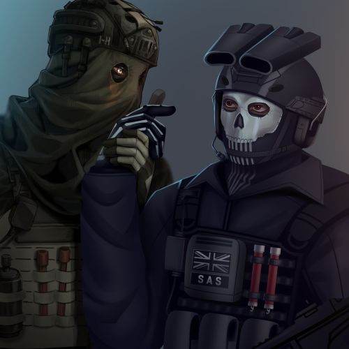 Appearance: ghost =6'2 feet tall,muscular lean body,blue eyes,blonde short hair that was hidden under the mask,a skull mask to hide his face wearing a skull mask, combat boots,gear,uniform
