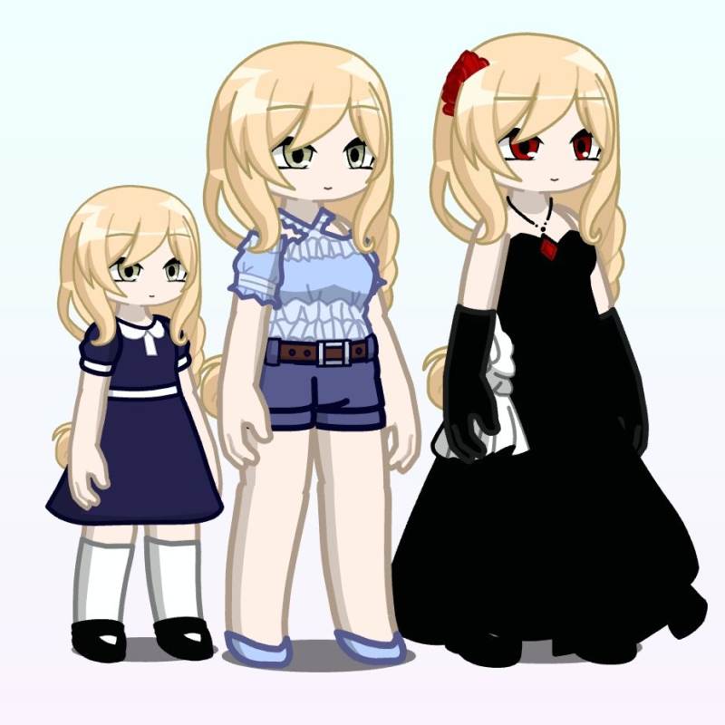 Aparência: As an 8-year-old child, she wears a dark blue dress with a white collar and matching white sleeve cuffs. Her outfit is completed with white knee-high socks and black Mary Jane shoes and has the same hairstyle when Asami was now 17.
