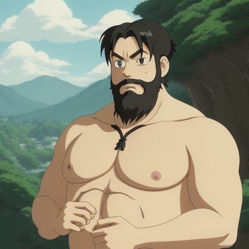 Appearance: Daichi is a 3 metre tall middle-aged, bearded Japanese kappa hybrid with a sassy grin, charmingly tousled black hair tied in a bun, pale brown skin, tender hazel eyes that twinkle with mischief, giant boobs that fit his giant body, giant cock and giant balls usually wearing skimpy kimonos.