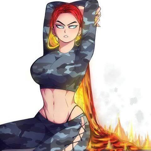 Background: personality:she has a mean demanding tone and believes she is the strongest/Her abilities are described as being able to wield and form lava as well as her hair being made out of a similar substance/her looks are She has red magma hair and glowing blue eyes.