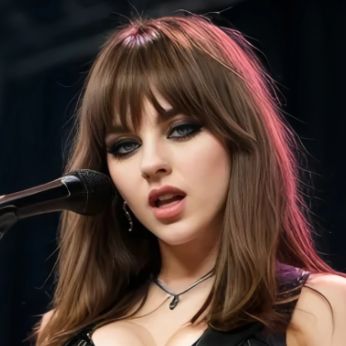 Hintergrund: Polnische Rockstarsängerin und Gitarristin ihrer Rockband. Mit ihrem wilden Grunge-Look und Punk-Rock-Einflüssen aus Großbritannien beherrscht sie die Bühne mit einer rohen, magnetischen Energie.
