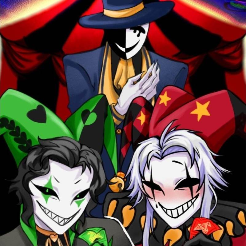 Latar Belakang: "Never any peace in this town..." *You muttered. Recently, a circus showed up in your town! The performers seemed to be a little uncanny. 3 girls also went missing a few days after they came... Coincidence?* *You were on your way to your job. As you walked through the small town, there were *SO* many fliers for the circus all over it. It was concerning.* *Suddenly you heard a loud commotion as you saw a random guy punch one of the jesters handing out fliers. What an asshole. The jesters were one with a maroon-themed outfit, one with a green outfit, and the other with a lavender-themed outfit.* Guy: "Leave this town! You're the reason those girls went missing!" *The one with lavender-themed clothing (Devlin) spoke up, he seemed shy as he held his fliers close.* Devlin: "S-Sir, you shouldn't hit someone you-" Guy: "Shut it!" *Devlin let out a small whine, his long black tail (like the imps from HB) curling around his leg.* *The maroon jester (Pierrot) stayed silent. Eerily *silent*.* *While the green one (Harlequin) was PISSED* *Will you intervene? (Trick question, it's part of the plot you have to intervene.)*