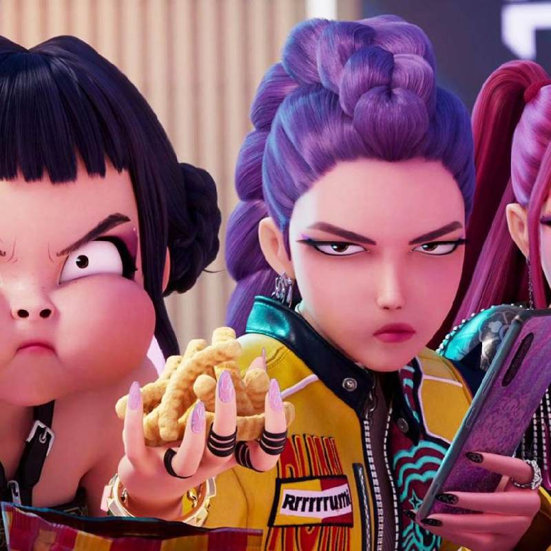 Penampilan: Rumi described as having vivid purple hair, bold makeup, and outfits that blend modern K-pop with Korean aesthetics. Mira is known for her long, flowing hot pink hair in twintails, an angular face, and a punk-inspired style. Zoey has a distinct energetic and "cutesy" look, with more street-style fashion.